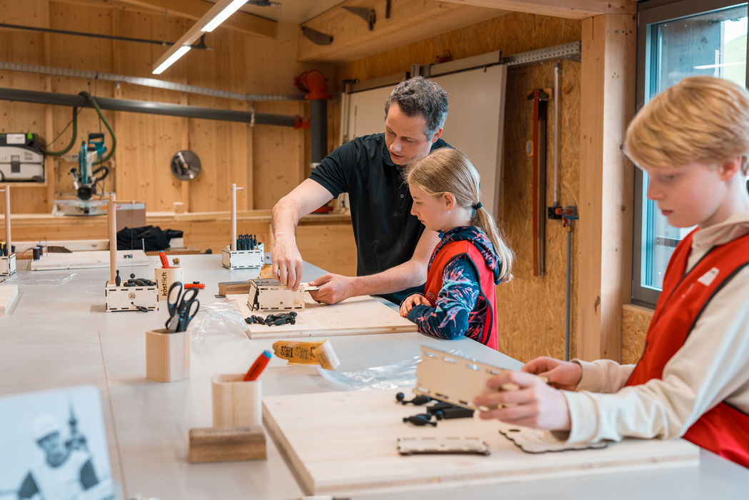 Gemeinsam im Team baust du ein neuartiges Holzspiel – fast wie Bowling, nur anders. Dein fertiges Spiel darfst du natürlich mit nach Hause nehmen. Die Lernenden und Berufsbildner:innen von Kost Holzbau begleiten dich den ganzen Nachmittag, zeigen dir Tricks aus ihrem Arbeitsalltag und beantworten alle deine Fragen zum Beruf und zur Ausbildung.