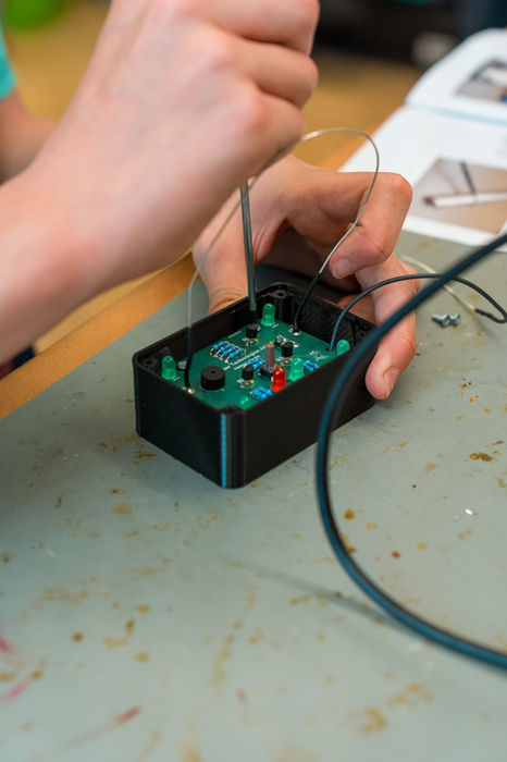 Gemeinsam mit den Lernenden der Leister AG lötest du dein eigenes „Heisser Draht“-Spiel und bekommst spannende Einblicke in den Alltag eines Elektronikers oder einer Elektronikerin. Dein fertiges Spiel darfst du natürlich mit nach Hause nehmen!