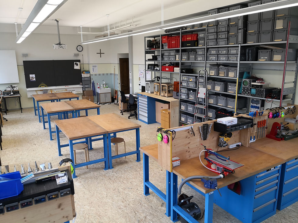 Die Werkstatt gehört dir! Arbeite an deinen eigenen Projekten oder wähle aus spannenden Bau-Sets wie Boombox, Taschenlampe oder Heisser Draht. Die Werkstatt ist kostenlos, Coaches helfen dir – Material wird nach Verbrauch bezahlt.